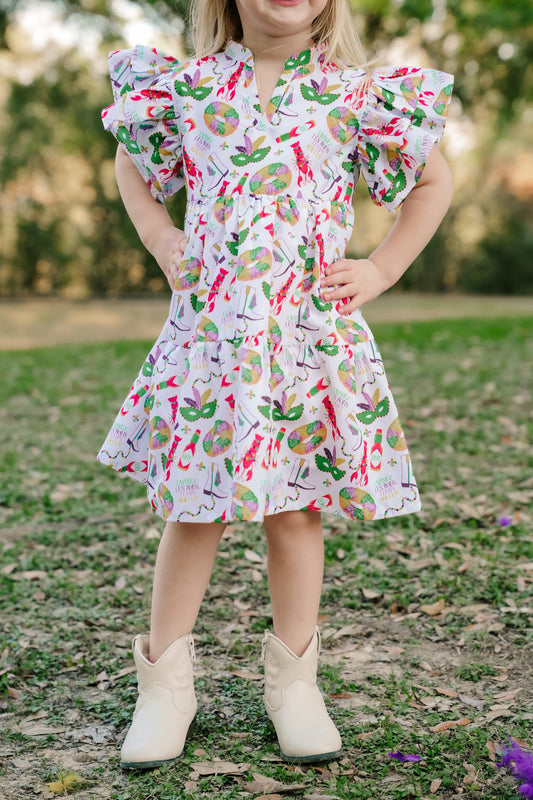 SS X Hemline Mardi Gras Ruffle Sleeve Dress